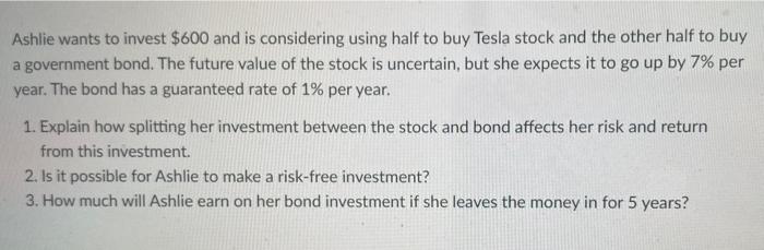 Solved Ashlie Wants To Invest 600 And Is Considering Using Chegg Com